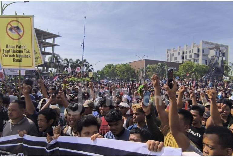 Sejak pagi, massa telah memadati kawasan Bundaran Patung Zapin. Mereka menuntut keadilan agraria serta perlindungan hak hidup masyarakat adat dan petani lokal yang telah lama bermukim dan menggantungkan hidup di wilayah konservasi tersebut.