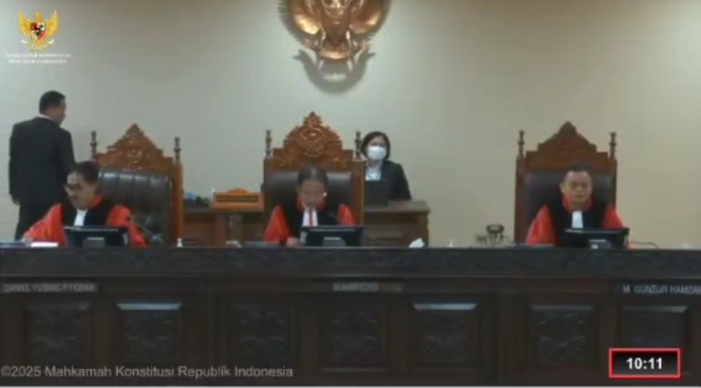 Sidang persidangan pemeriksaan pembuktian di Mahkamah Kontitusi. (Poto: screenshot)